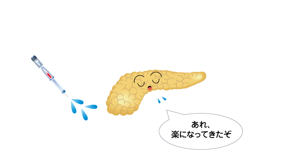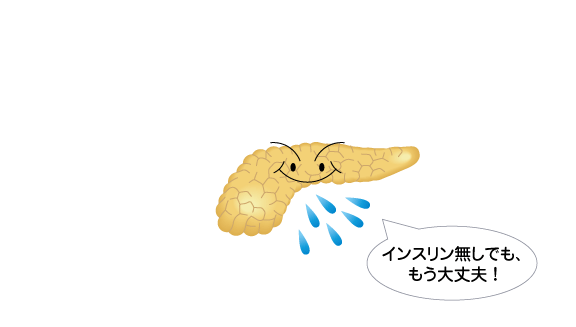 インスリン治療を続けてすい臓の力が十分に回復すると、すい臓はインスリンを出しやすくなり、インスリン注射の量や回数を減らせるだけでなく、のみ薬だけの治療に戻せることもあります。